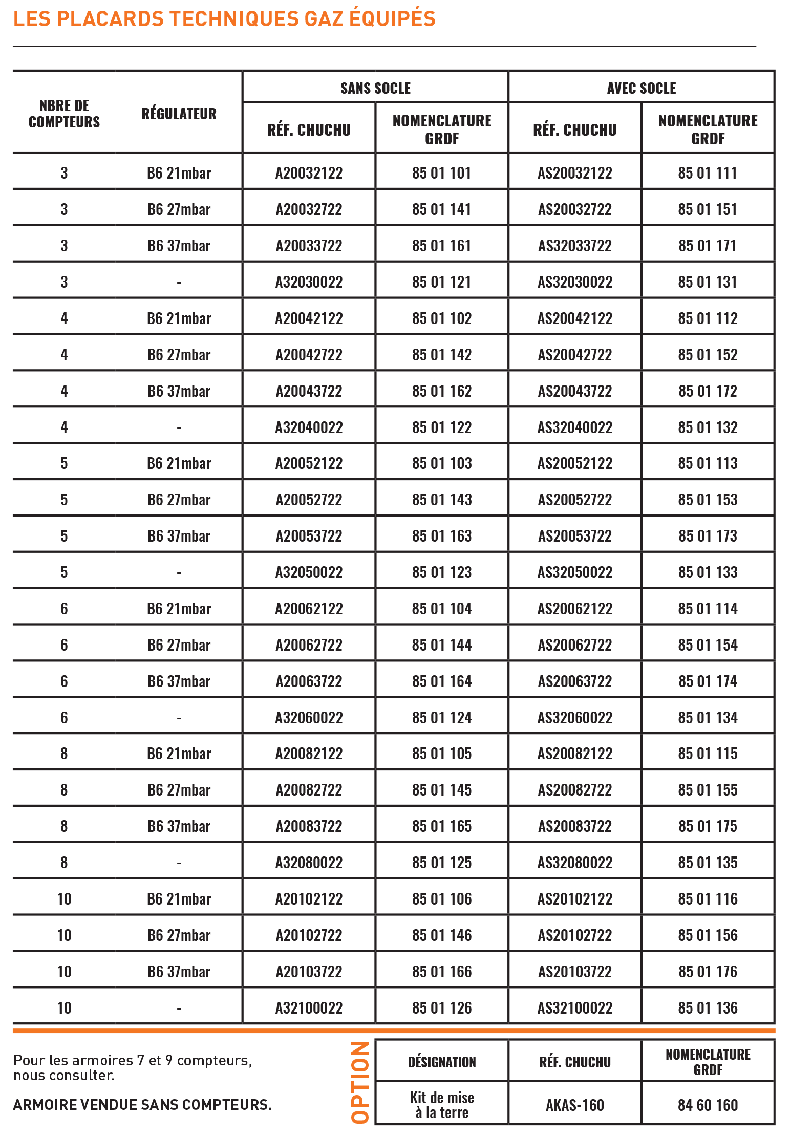 • Armoire 6-8 compteurs: 1100 x 800 x 250